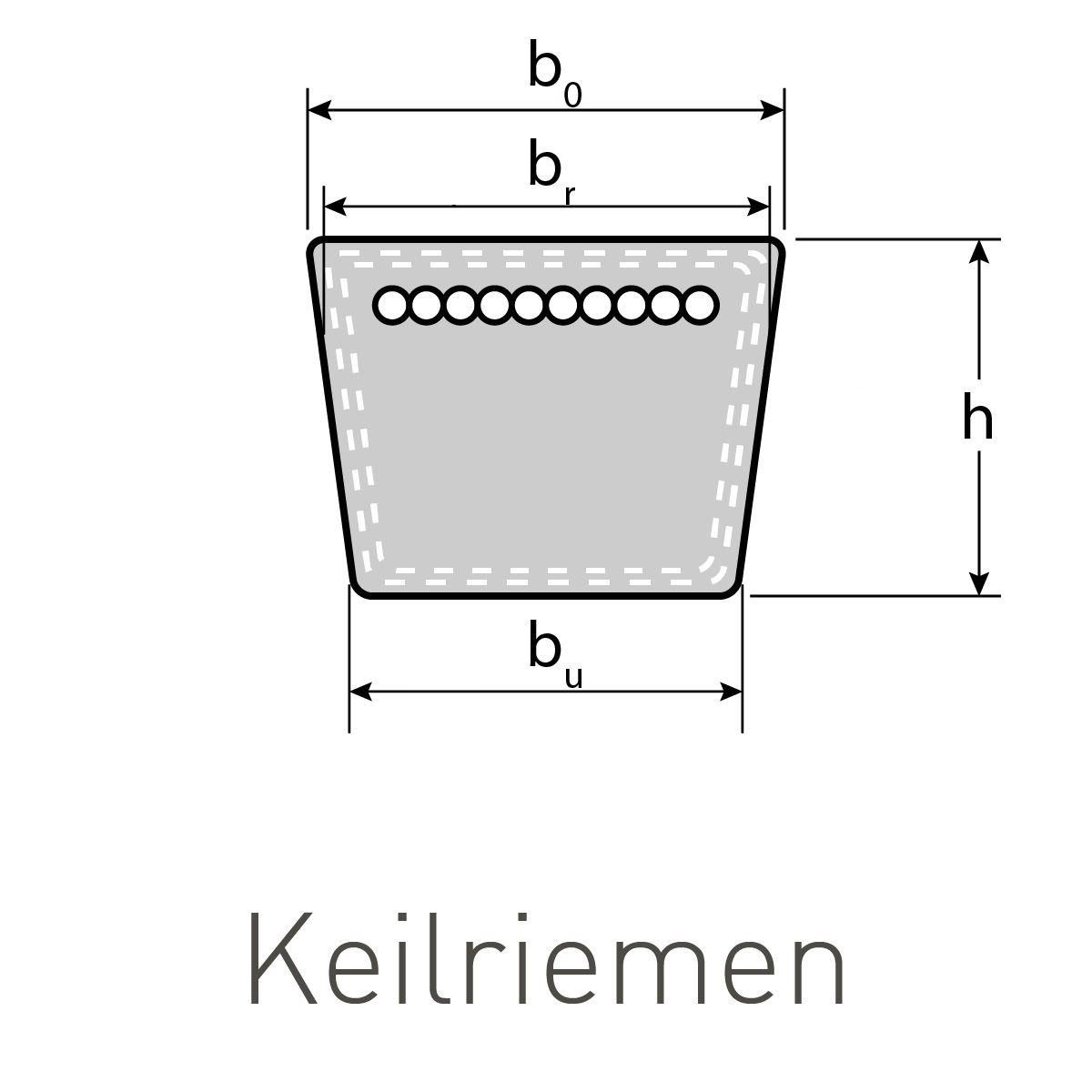 Klassischer Keilriemen nach DIN 2215 / ISO 4184 - ummantelt - im Querschnitt von 13 x 8 mm