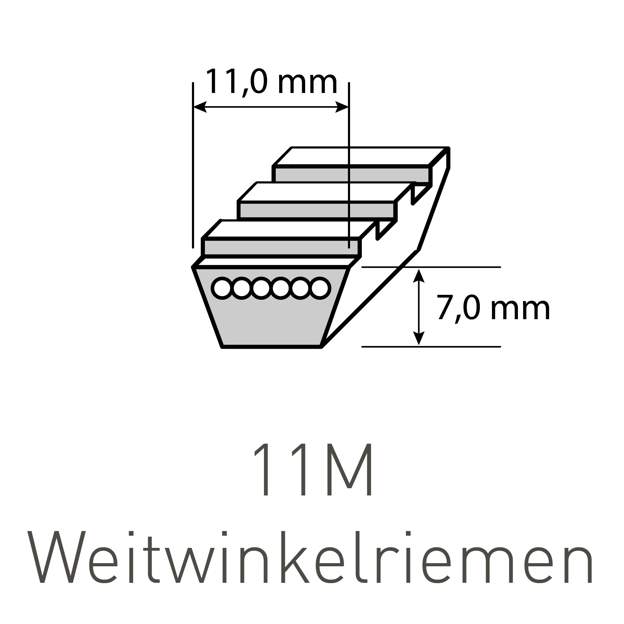 Produktinformationen "Weitwinkelriemen 11M-1400, Polyurethan mit Polyesterzugstrang"